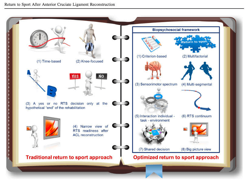 Dingenen et al. proposes: “an optimized criterion-based continuous and multifactorial return-to-sport approach based on shared decision making, with a focus on a broad spectrum of individual sensorimotor and biomechanical outcomes, within a biopsychosocial framework.”