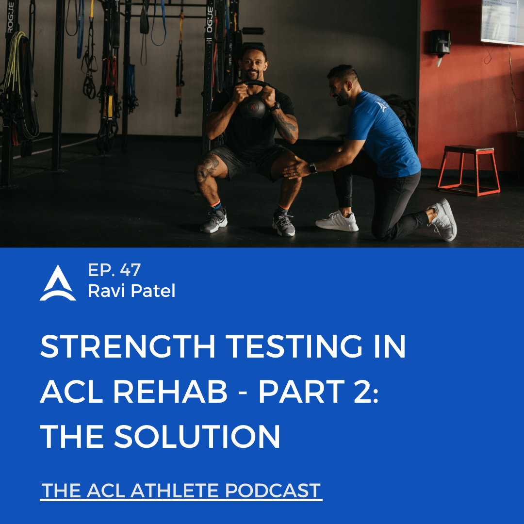 What’s up guys, and welcome back to another episode on the ACL Athlete Podcast. Today is episode number 47, and we are continuing the two-part series talking about strength testing in ACL rehab. Today, we are doing part two. It is focused on the solution, which last week we talked about in part one the problem related to strength testing in ACL rehab. We talked about the statistics. We dove into some research studies, talking about the big problem which is the re-injury rates and return to sport rates, which are re-injury rates are super high and return to sport rates are really low. And in a nutshell, we just need to improve these numbers. And when we ask why, a big factor in this is testing, and specifically knowing where our strength is, whether that’s our quadriceps strength or our hamstring strength. Our overall strength is going to be really important and a really big factor when playing into these different rates.